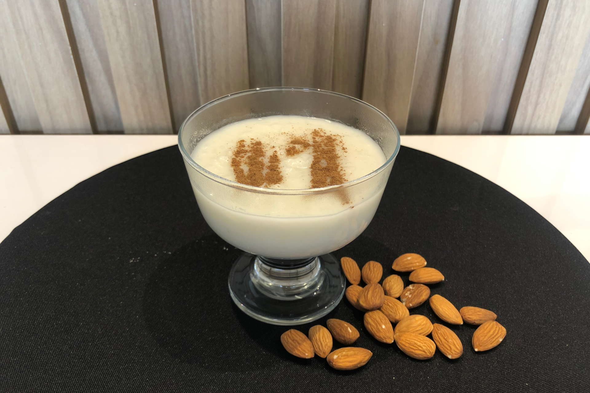 Em uma panela coloque o arroz, a açúcar, a água filtrada e mexa até a mistura ferver. Em seguida, adicione o leite de amêndoas e vá misturando sempre até que o arroz fique bem cozido. Coloque em uma travessa ou em taças individuais e salpique canela em pó. Espere esfriar. Pode ser consumido morno ou gelado.