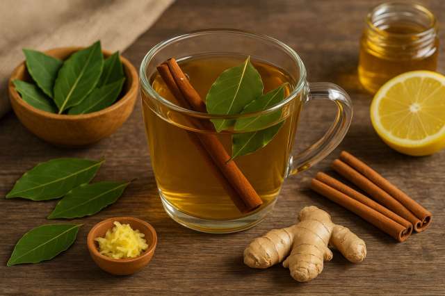 O Chá de Louro tem origem na região do Mediterrâneo e é amplamente utilizado na medicina popular por suas propriedades digestivas e calmantes. As folhas da planta são valorizadas desde a Antiguidade como remédio natural para aliviar cólicas, melhorar a digestão e reduzir inflamações. Quando combinadas com a canela, uma especiaria originária da Ásia e apreciada por seu potencial termogênico, e com o gengibre, raiz amplamente empregada na medicina tradicional chinesa e indiana, a infusão se transforma em uma bebida poderosa. O resultado é um chá aromático, funcional e cheio de benefícios, ideal para ser consumido em jejum, após as refeições ou nos momentos em que o corpo pede equilíbrio e bem-estar.