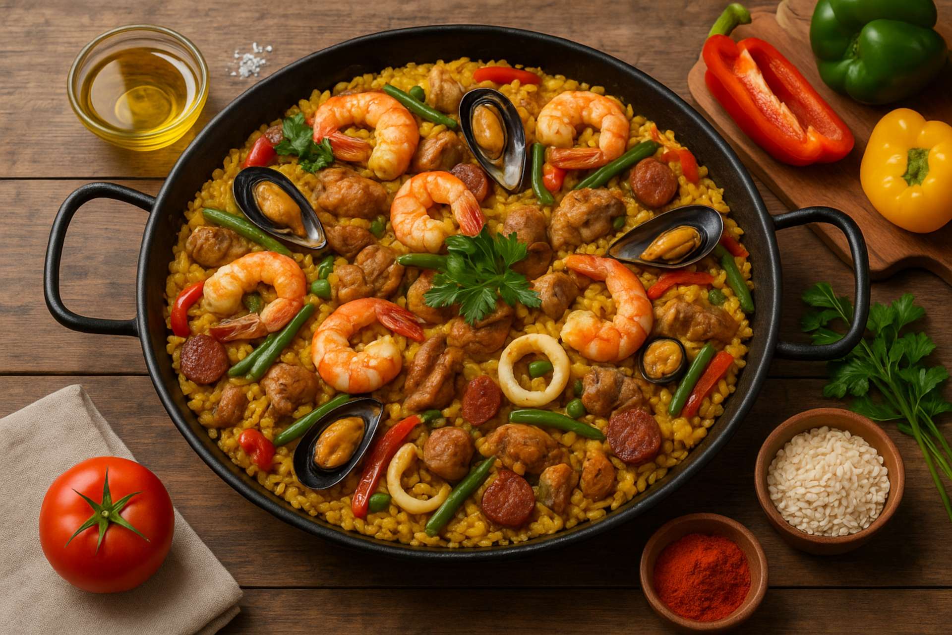 A Paella Valenciana é um dos pratos mais emblemáticos da gastronomia espanhola. Originária da região de Valência entre os séculos XV e XVI, era preparada pelos camponeses com os ingredientes disponíveis: arroz, coelho, frango, feijões verdes e açafrão. O cozimento em fogo vivo sobre brasas, em uma paelleira de grande diâmetro, resultava em um prato rico, aromático e de sabor marcante.