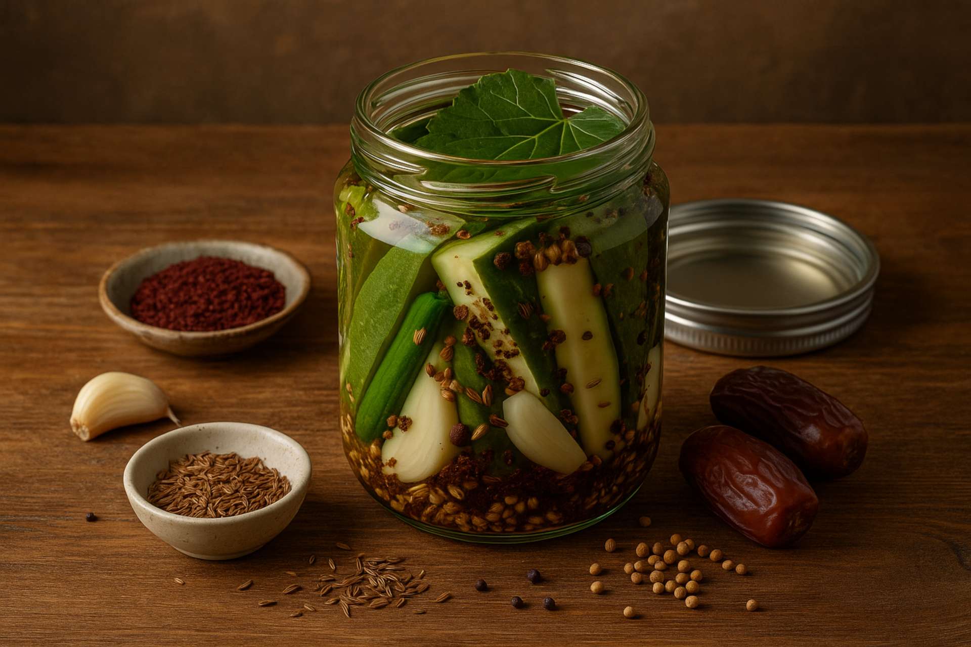 4. Montando tábuas temáticas: Integre a conserva em uma tábua de sabores mesopotâmicos, junto com chutney de tâmaras, carnes curadas e bolinhos de lentilha.