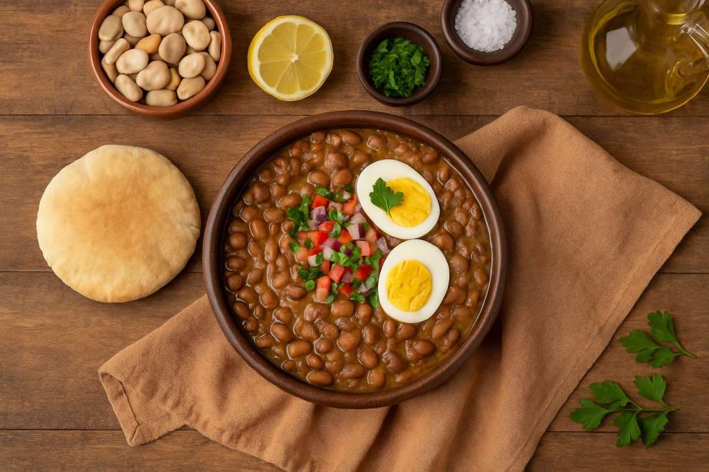 O Ful Medames é um prato símbolo da culinária egípcia e bastante consumido em outros países do Oriente Médio e do norte da África. É feito com favas cozidas lentamente e temperadas com ingredientes simples como azeite, alho e limão. Trata-se de uma preparação ancestral, que remonta ao Egito faraônico, quando já se cozinhavam favas em potes de barro enterrados em brasas. Tradicionalmente consumido no café da manhã, o ful é um alimento rico em proteínas vegetais e fibras, muito acessível e nutritivo. Ele pode ser servido com pão sírio, ovos cozidos e vegetais frescos – e faz parte da alma da comida de rua egípcia.