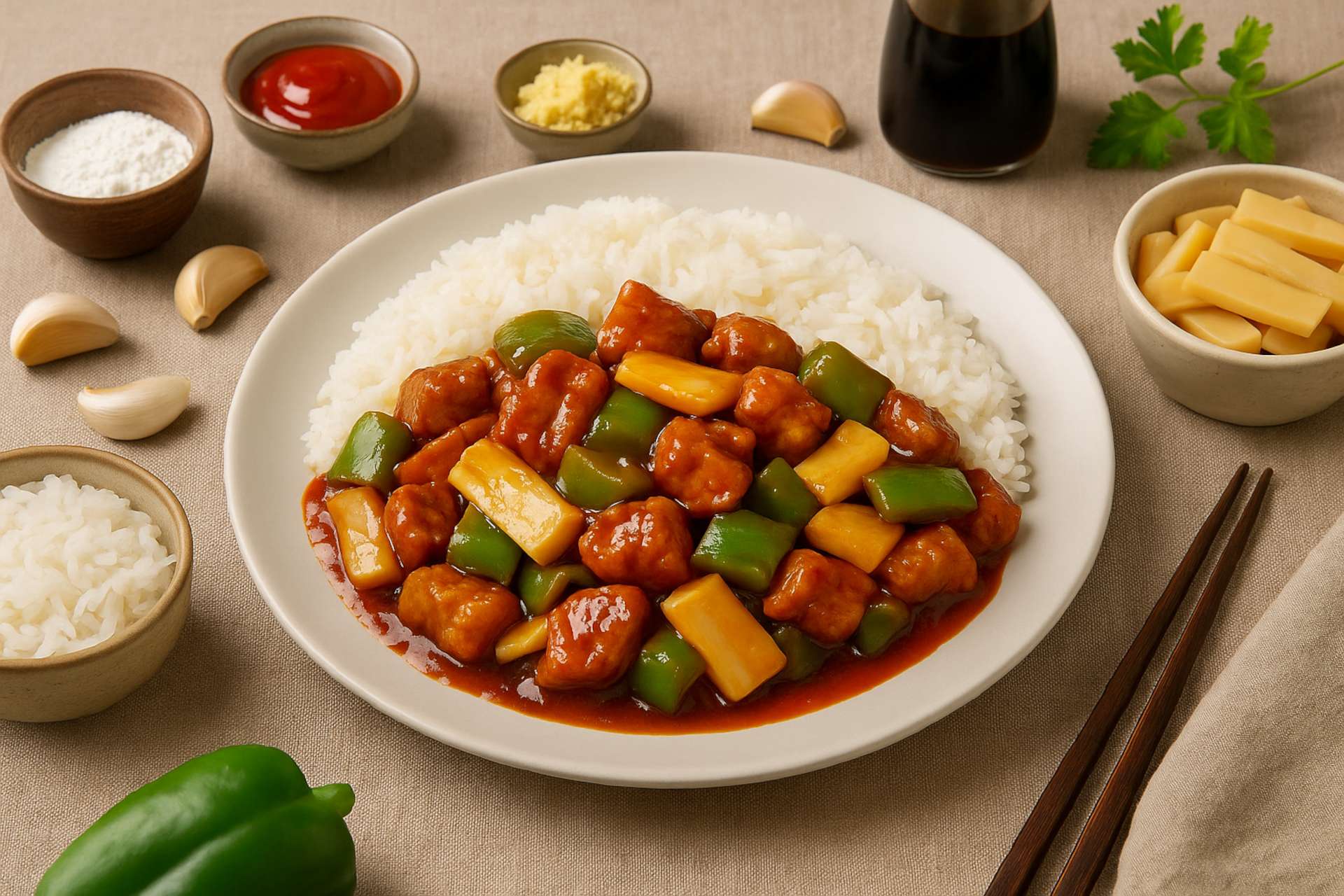 O Pernil Agridoce com Broto de Bambu é uma receita inspirada na culinária chinesa, especialmente em versões populares da cozinha cantonesa. A combinação da carne suína com legumes salteados e o molho agridoce cria um prato saboroso, marcante e de fácil preparo. O broto de bambu, ingrediente muito utilizado na China, adiciona textura e frescor. Esta receita representa a fusão entre tradição e adaptação moderna, sendo amplamente apreciada em restaurantes chineses ao redor do mundo.