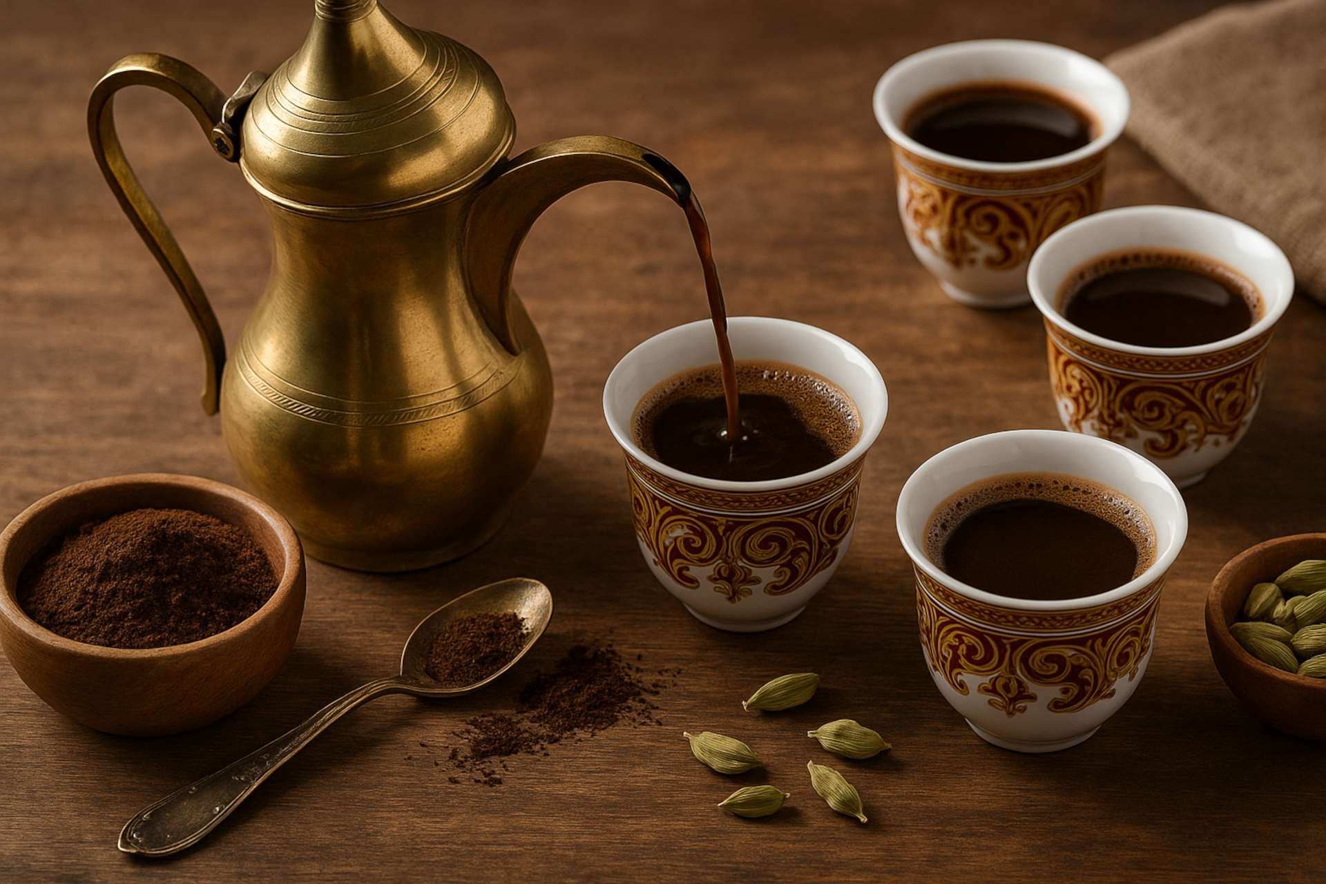 O café árabe é tradicionalmente oferecido como sinal de boas-vindas, respeito e generosidade em países como Arábia Saudita, Emirados Árabes, Líbano e Síria. A torra clara preserva os óleos naturais do grão, enquanto o cardamomo realça o aroma e facilita a digestão. Em algumas culturas, adiciona-se também açafrão, água de rosas ou cravo, criando variações regionais com significados específicos.