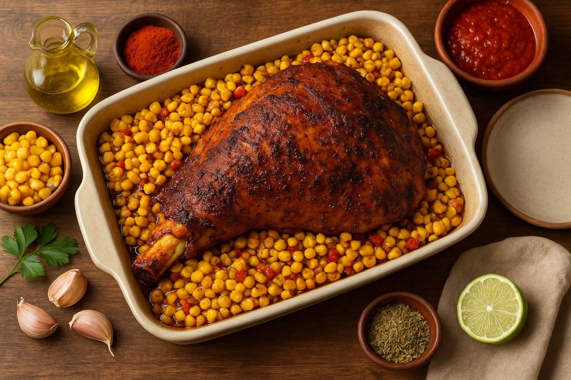Embora o cordeiro não seja nativo da América pré-colombiana, esta receita é uma adaptação que homenageia as técnicas de cozimento lento utilizadas pelos incas. As civilizações andinas, especialmente no atual território do Peru, mas também em regiões da Bolívia, Equador, Chile e norte da Argentina, costumavam assar carnes junto com ingredientes locais como milho e pimentas para extrair sabores intensos e equilibrados. Nesta versão contemporânea, combinamos o pernil de cordeiro com especiarias e milho, resultando em um prato suculento, aromático e visualmente atraente, que traz à mesa a riqueza da gastronomia andina de forma acessível.