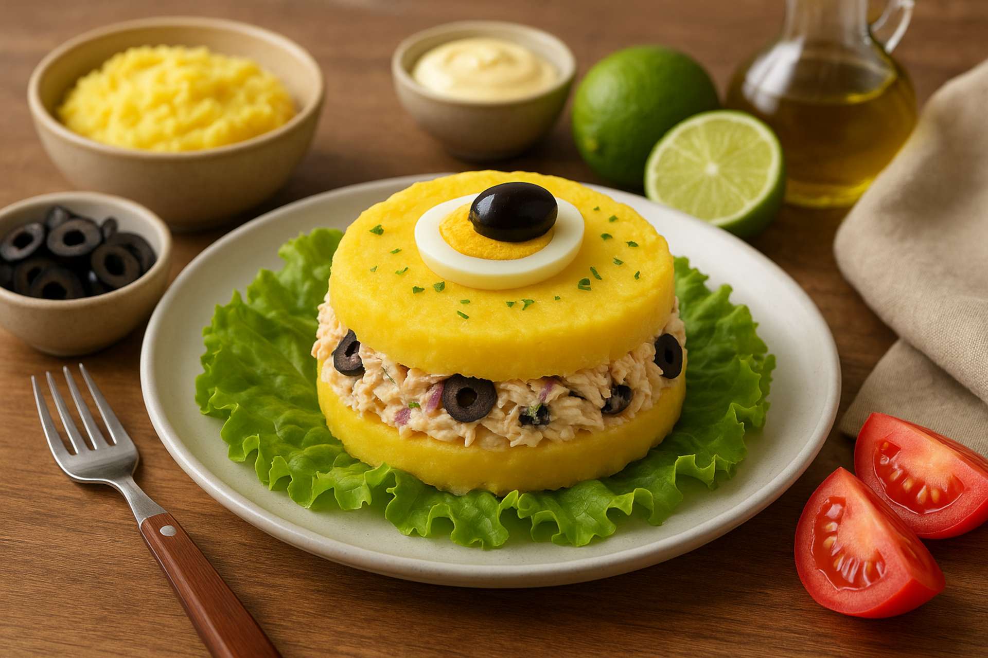 A Causa Limeña é um prato tradicional peruano que remonta às origens andinas, onde a batata era um alimento central da dieta incaica. O prato evoluiu ao longo do tempo, incorporando técnicas e ingredientes trazidos posteriormente pelos colonizadores, mas mantém a batata como protagonista. Tradicionalmente preparada com batatas amarelas nativas, a causa é servida fria, muitas vezes em camadas com recheios de frango, atum ou legumes, temperada com limão e pimenta. Este prato é um excelente exemplo de como a cozinha moderna da América do Sul ainda dialoga com a herança inca. Observação: a receita a seguir foi adaptada com a batata comum ou asterix, variedades mais fáceis de encontrar no Brasil.