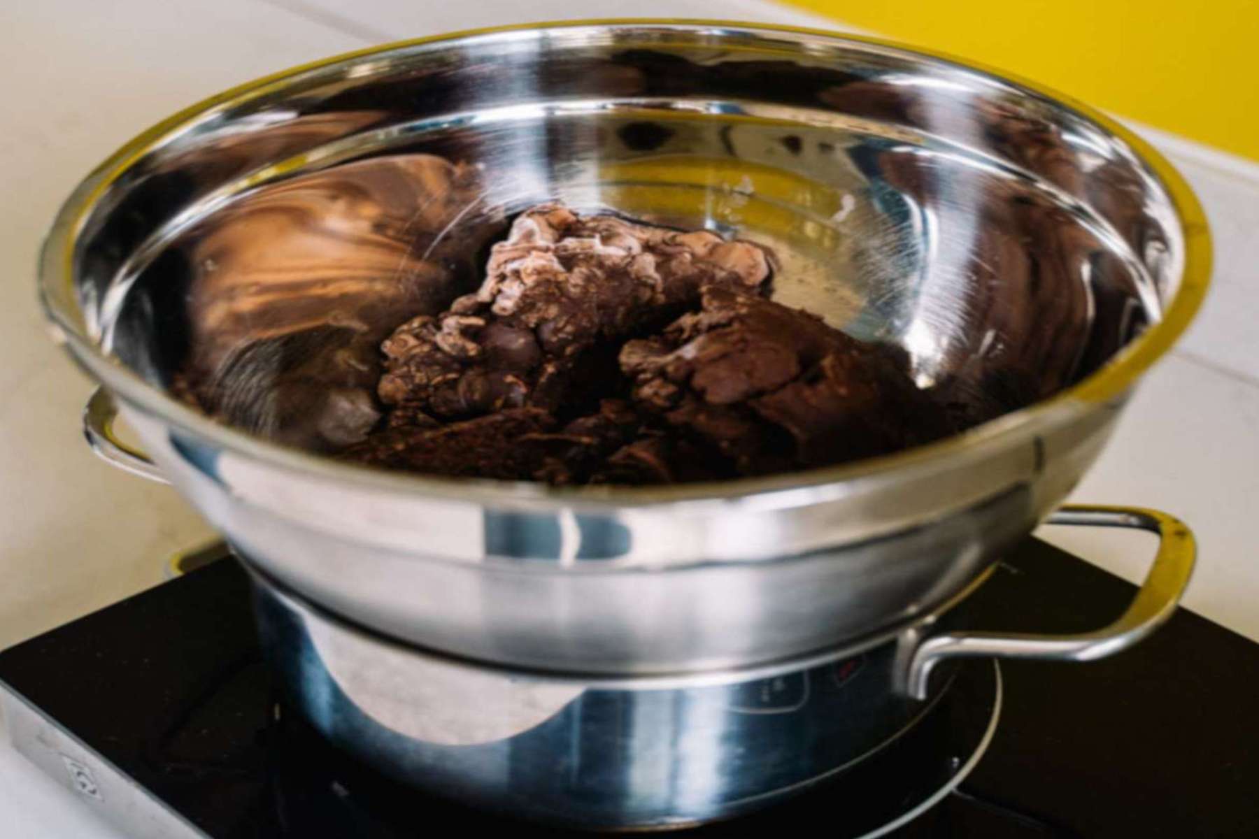 - Acrescentar vinho, conhaque, vinagre, azeite, grãos de pimenta-do-reino, cravos-da-índia e sal.