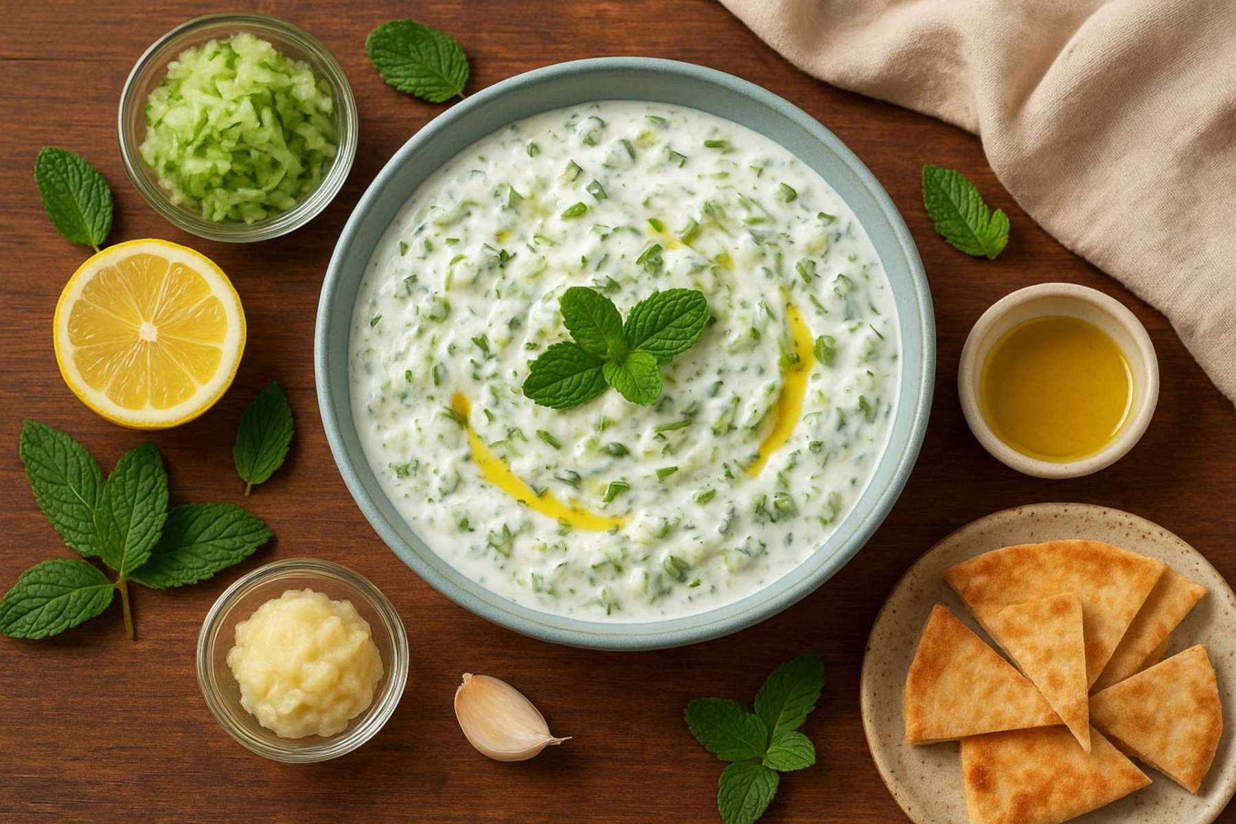 O tzatziki é um molho cremoso e refrescante de origem grega, muito popular também em Chipre e em diferentes países do Oriente Médio. Sua base é feita com iogurte, pepino e ervas frescas, o que resulta em uma combinação leve, ácida e aromática. Tradicionalmente servido como acompanhamento de carnes grelhadas, como cordeiro ou frango, também é presença constante em pratos típicos como o souvlaki e o gyros. Versátil e saudável, pode ser utilizado como dip para pães, torradas e vegetais crus, trazendo frescor a qualquer refeição.