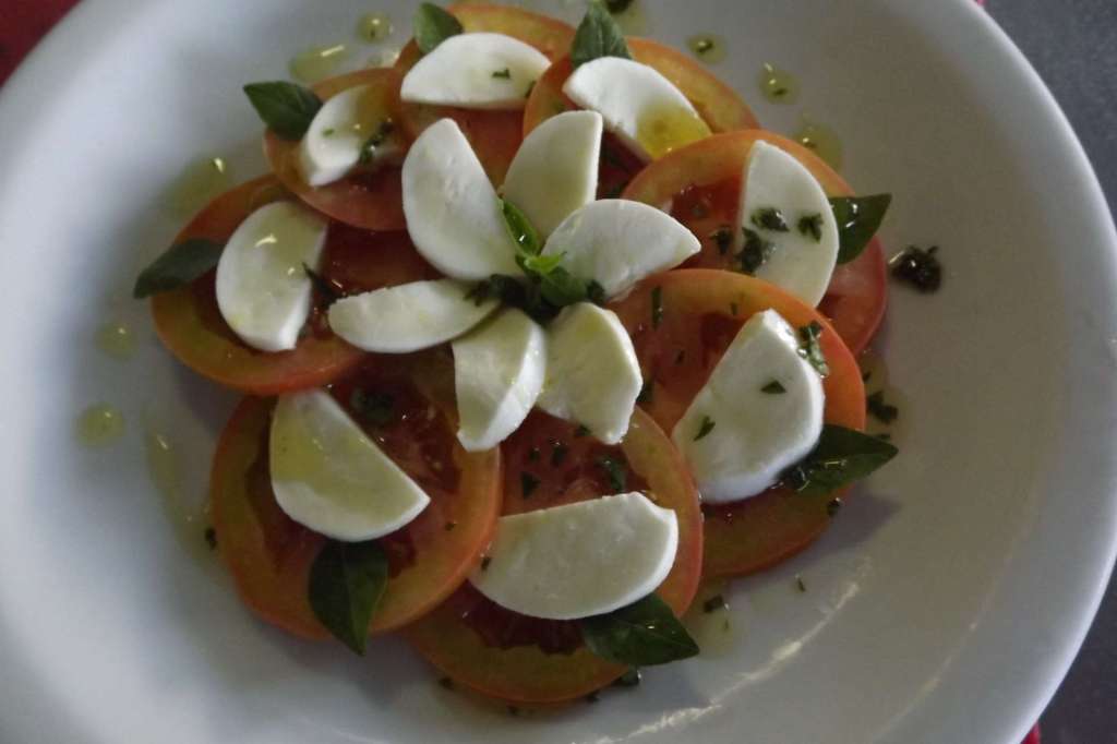 Uma salada super fácil! Tomate, muçarela de búfala e manjericão temperados com sal, pimenta do reino e azeite. Além de ser saborosa, é uma alimentação leve e saudável. Prato proveniente da ilha de Capri na Itália e é um dos símbolos gastronômicos. Em sua combinação de cores reflete a bandeira italiana: verde, vermelho e branco.