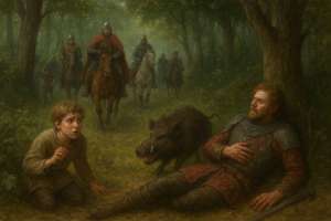 — Os senhores não estão entendendo! A cada dia, a coroa inglesa exige mais impostos, e grande parte deste valor eu nem repasso aos meus vassalos, para não gerar uma rebelião. Como posso custear tamanho investimento? Maldita hora em que aceitei essas terras de Edward… – Balder, desesperado, abaixa o rosto, escondendo-o entre as mãos, e diz baixinho: — Preciso da ajuda dos senhores. Não sei mais o que fazer.