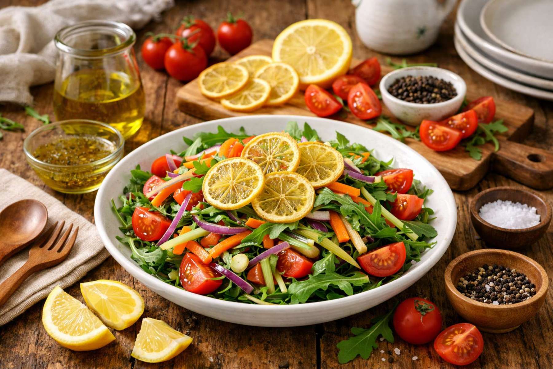 3. Curiosidades: Na Grécia, a Horiatiki tradicionalmente não leva vinagre, sendo temperada apenas com azeite, sal e, em algumas regiões, um toque de orégano selvagem. O queijo feta costuma ser servido em um bloco inteiro sobre a salada, e não esfarelado, reforçando o caráter rústico da preparação.